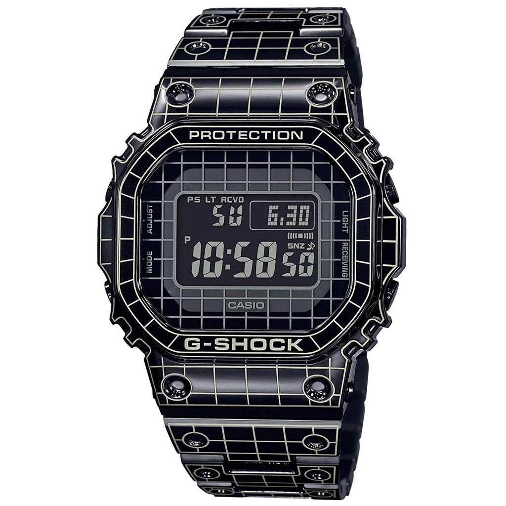 G-Shock's limited edition FULL METAL GRID TUNNEL PATTERN digital watch is the newest, hottest creation by the world-renowned brand. With this timepiece, they give the DW5000 core model - which happens to be the first G-Shock model ever - a beautiful black IP case and band brought about with the latest technology. Ideal for the watch collector but also perfect to wear at the beach, the gym, or really any other physical activity. It wouldn't be a G-Shock, though, without an array of useful features, which include a solar battery, Mobile link (Wireless linking using Bluetooth®), Shock Resistance, Super-Illuminator LED backlight, World Time, and 200M water resistance.