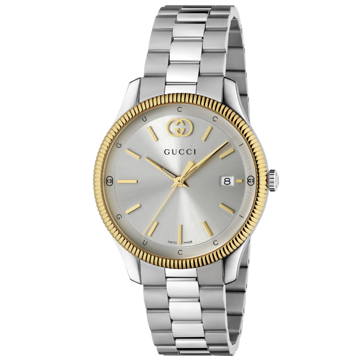 Silver-toned dial with Interlocking G, date at 3 o' clock