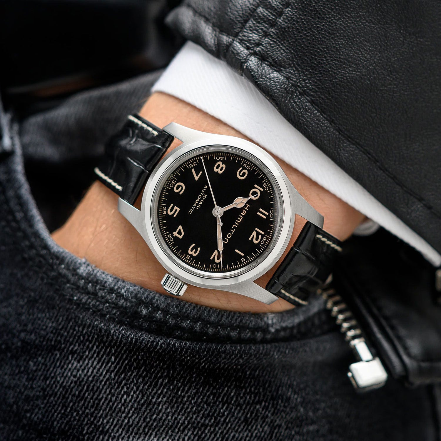 This special bundle set gives you more choices to wear the iconic Khaki Field Murph 42mm, complete with a sophisticated leather strap and a sleek stainless steel bracelet in one special package. Relying on the utmost craftsmanship and know-how, Hamilton is committed to achieving excellence with a focus on durability and attention to detail. Our durable leather straps will add a timeless and enduring appeal to your timepiece, while metal bracelets, engineered for comfort and versatility, give your timepiece a refined and elegant edge.