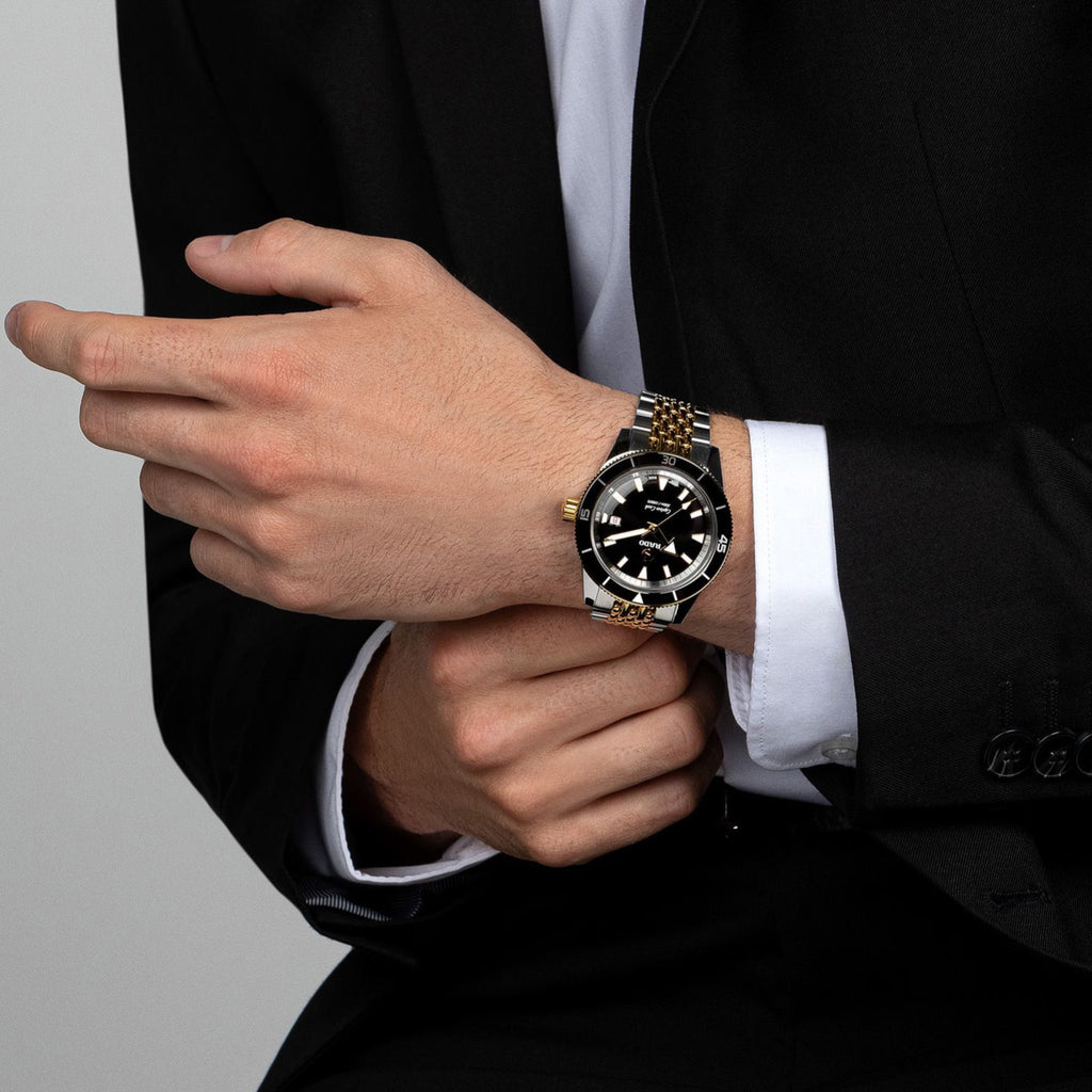 An original look from 1962 is brought to life in a new and improved form for the twenty-first century. With vintage details and styling true to the original, and up-to-date features that make it a match for modern wearers, Captain Cook is a watch designed to stand the test of time. The new 42 mm Captain Cook is water-resistant to 30 bar (300m) and has already proved a hit with contemporary watch wearers and modern explorers.