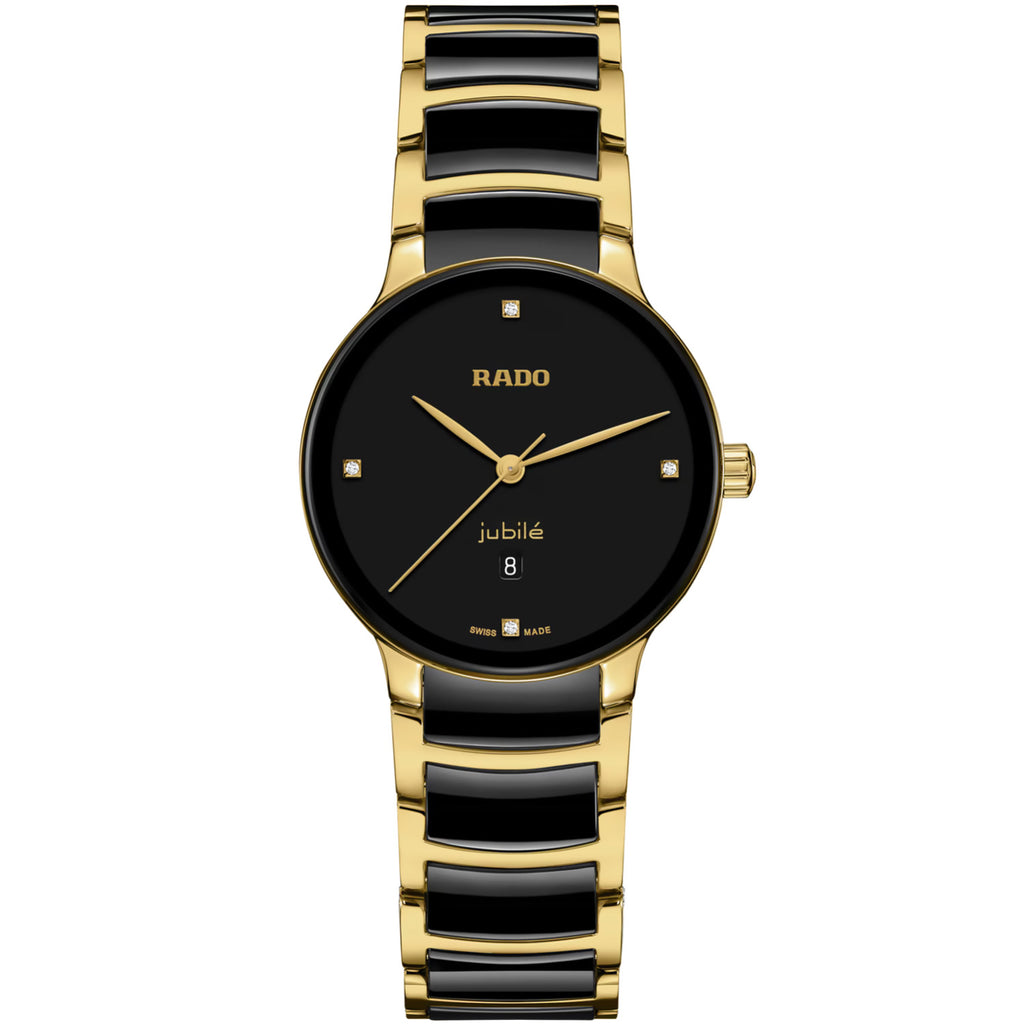 The overall appearance of this iconic timepiece is completed with adjusted case lugs and a bracelet made of polished yellow gold-colored PVD-coated stainless steel with black high-tech ceramic middle links. The black lacquered dial with 4 diamonds, emphasized with the printed “Jubilé” logo, matches perfectly with the yellow gold-colored hands. Thanks to the PreciDrive and HeavyDrive features in the calibre R079 quartz movement, the watch has greater accuracy and resistance to shocks.
