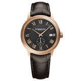 at 9 o'clock and Raymond Weil logo at 3 o'clock