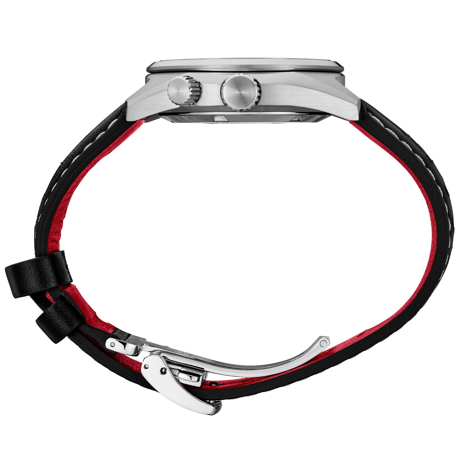 Designed to flow seamlessly from the case to a special punch-pattern strap, sourced from an LWG certified tannery, it is equipped with a secure screwdown crown and tri-fold push button release clasp.