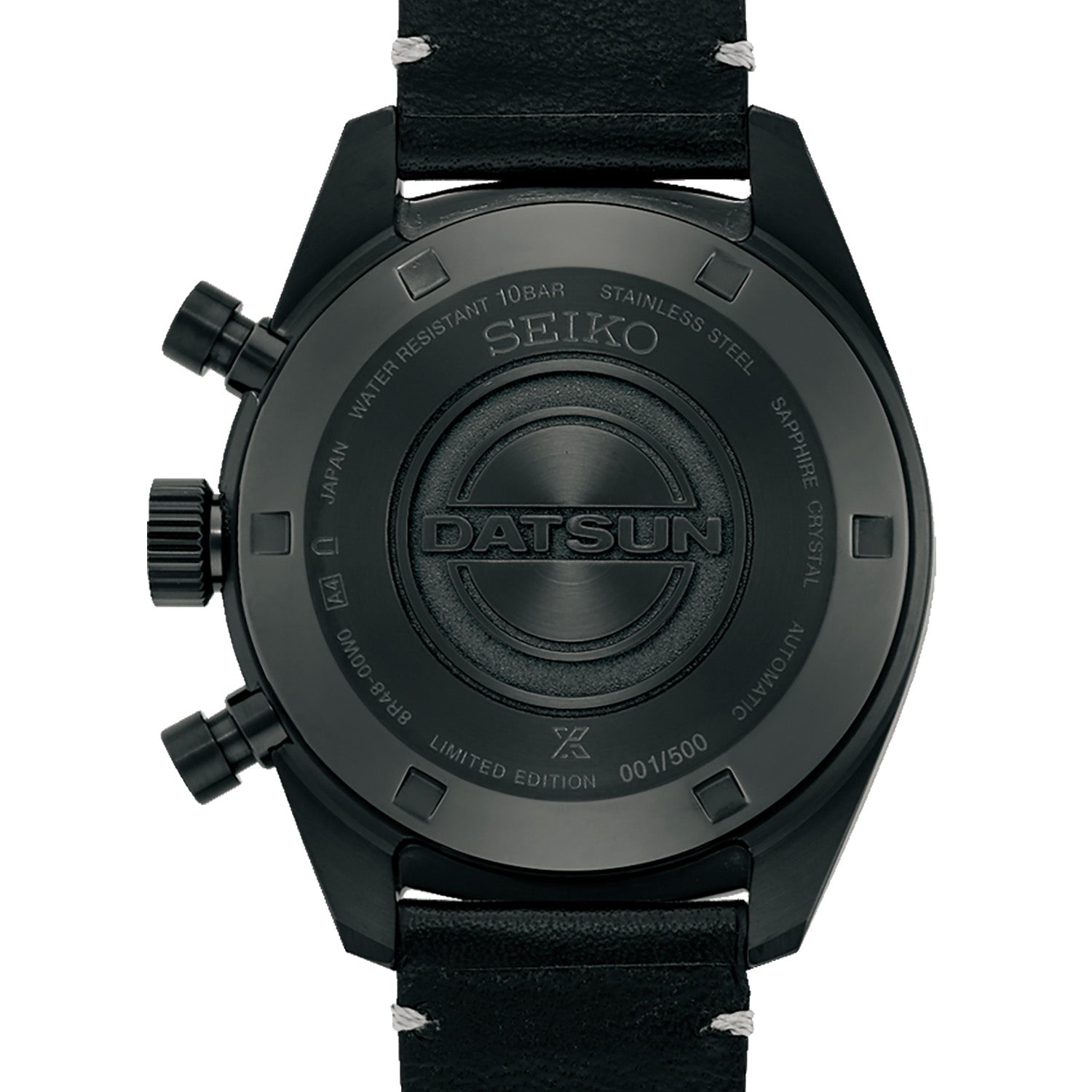 Seiko Prospex challenges every limit with timepieces created to exceed expectations, engineered with superior style and innovative technology for the sea, sky or land. Driven by a heritage of iconic design, Prospex continues to keep going forward with excellence in precision timekeeping, crafted for the modern world. Commemorating the Seiko-supported “Datsun 240Z” Safari car that won the 6,200km East African Safari Rally in 1971, widely regarded as one of the toughest races in the world, this highly collectible Limited Edition is available only in a controlled production run of 500 pieces. Featuring a font and color motif modeled after the original safari car instruments, the black dial, framed by a tachymeter bezel, prominently displays the Datsun logo as well as the word “Speedtimer,” honoring Seiko’s legacy of sports timing.