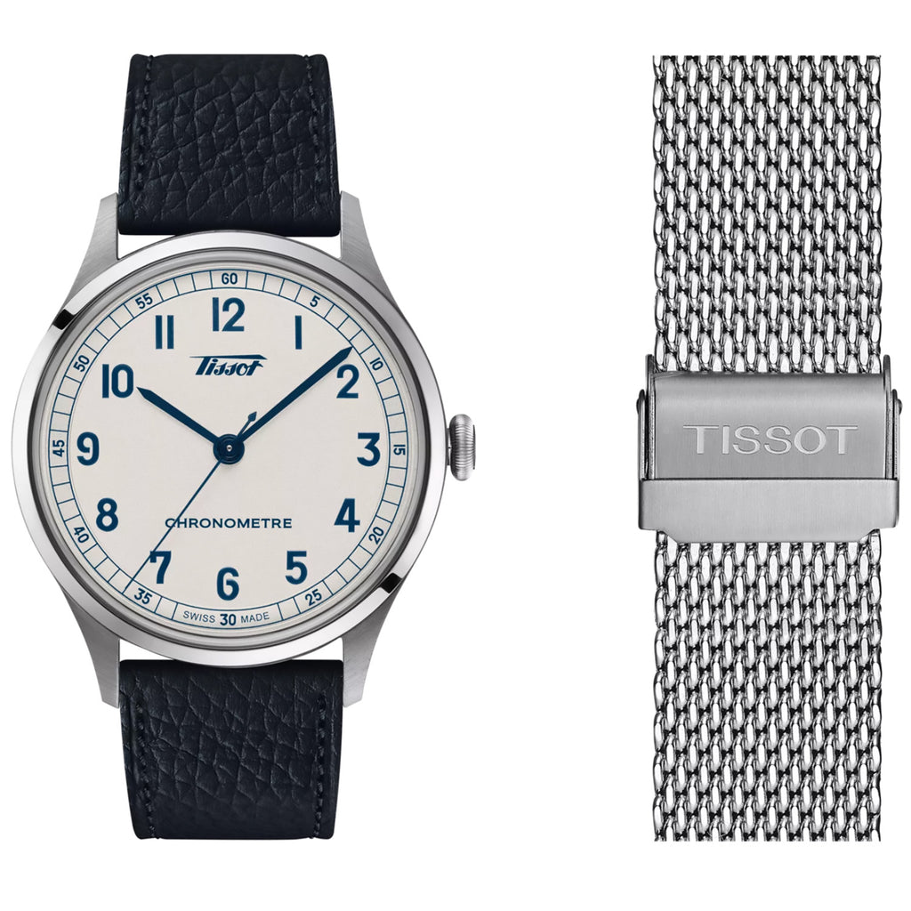 Rediscover the unique charm of the 1930s with the Tissot Heritage Gent Auto COSC 1938. Its vintage silver dial and contrasting dark blue Arabic numerals, were imagined as a nod to the simplicity and distinct design of the past. Protected by a 316L stainless steel casing and offering water resistance up to 50m, this timepiece is a durable partner for everyday life. The COSC-certified 2824-2 movement guarantees consistent accuracy, while the classic dark blue grained leather strap offers both comfort and style. Sized at 39 mm, this watch is a refined choice for aficionados of craftsmanship and history.