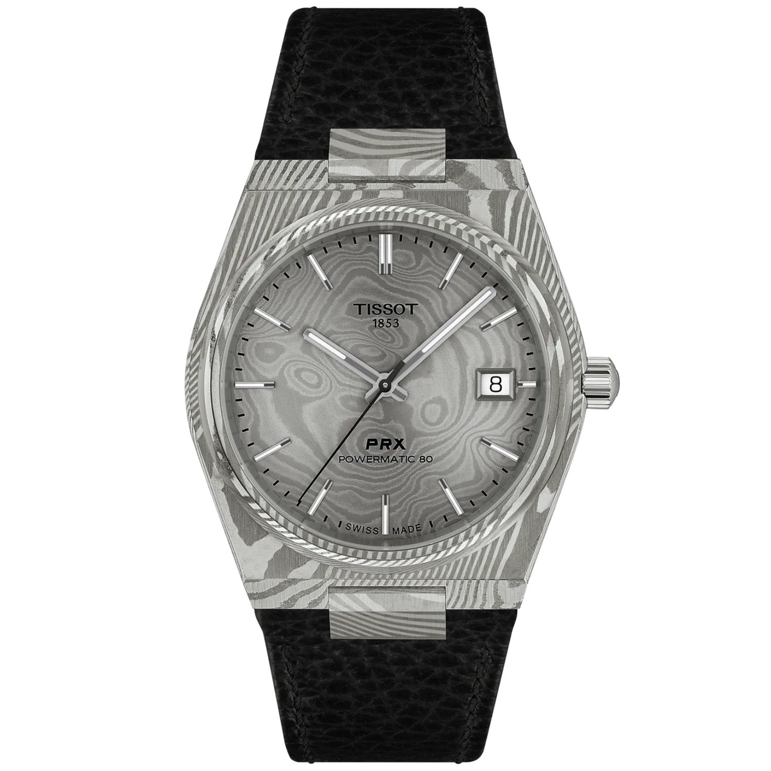 An icon reborn with cutting-edge material : marbled stainless steel Damascus. If you’re looking for a slim, smooth watch with an authentic ‘70s feel, look no further than the PRX Powermatic 80. Created for those with an eye for design and packed with twenty-first century features in a Tissot case shape from 1978, the PRX is a must-have on every watch fan’s wish list. The self-winding Powermatic 80 movement delivers reliability and precision thanks to the innovative Nivachron hairspring. With 80 hours of power reserve, it’s a modern movement designed to keep pace with busy lifestyles. It is this special steel that gives the dial and case their marbled effect. The leather strap is interchangeable and easy to open.